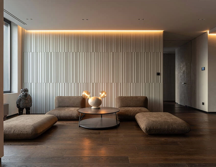With cohesive dark color scheme and subtle variations in tone, it offer an ideal living space of tranquillity and sophistication. Paired with the furnishings, the contrast of shades add layers and depth to the space.