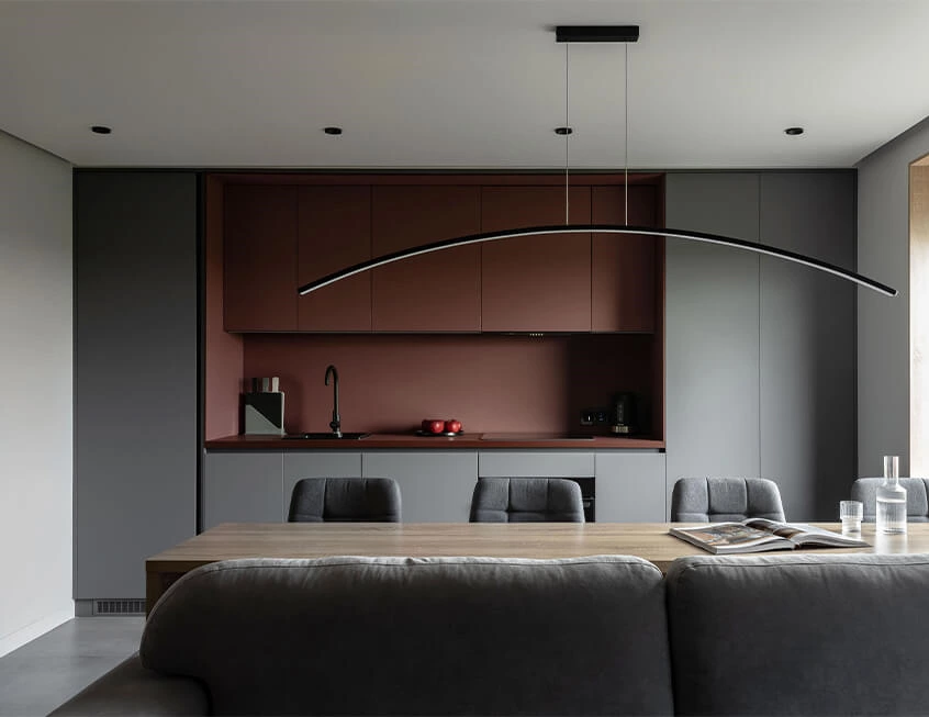 The minimalist kitchen interior offers a sense of relaxation, free from visual distractions, daily chaos, and the excess consumption.