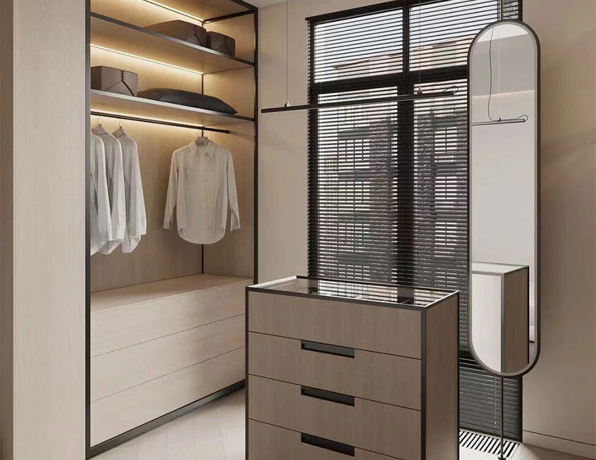 The built-in wardrobe is gradually replacing traditional wardrobes with the rise of minimalist style. In comparison to traditional wardrobes, the built-in design is more space-saving and efficient in space utilization, seamlessly blending with the wall instead of appearing obtrusive.
